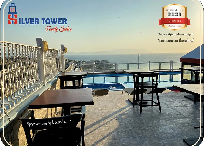 Het Silver Tower Residence Kuşadası met 2 sterren, gelegen op amper 950 meter loopafstand van het strand Kadinlar Denizi, biedt uitzicht op de zee. Er zijn een snack bar en een buitenzwembad beschikbaar op het terrein.